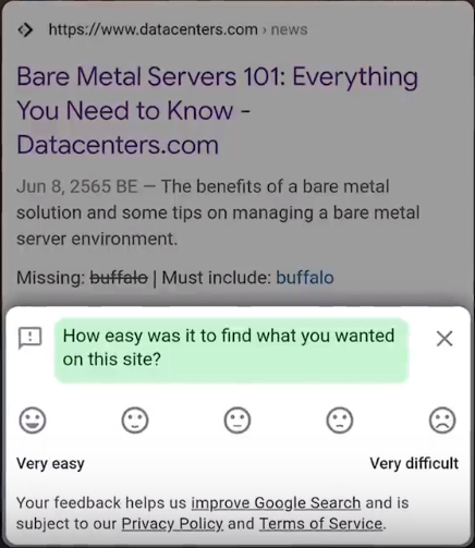 He then found this underneath the result that he previously visited, he found this quick survey. How easy was it to find what you wanted on this site and in this age of distraction and attention economy?